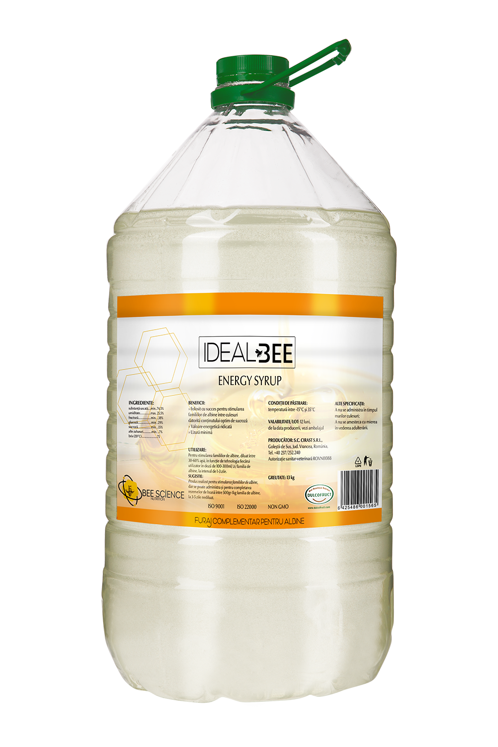IdealBee Energy Syrup este un sirop nutritiv destinat hrănirii albinelor, conceput pentru a susține dezvoltarea și vitalitatea coloniilor în perioadele în care resursele naturale de nectar sunt reduse sau inexistente. Formula sa oferă un aport echilibrat de carbohidrați, contribuind la menținerea nivelului optim de energie al albinelor.