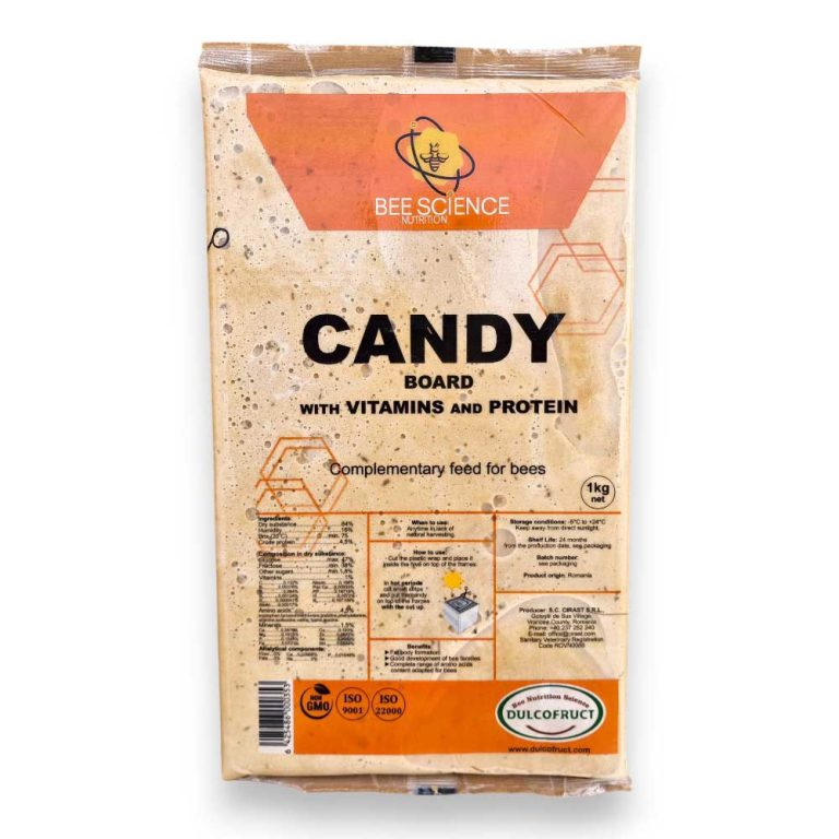 Turtă energetică cu vitamine și proteine 1 kg este o hrană solidă destinată susținerii și stimulării dezvoltării familiilor de albine atunci când resursele naturale sunt insuficiente. Produsul oferă atât aport energetic, cât și nutrienți importanți care contribuie la menținerea vitalității coloniei.
